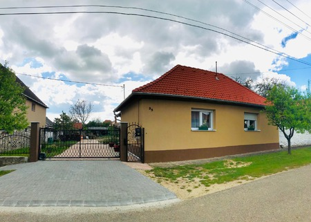 A vendégház a telek sarkán, kertektől határoltan helyezkedik el. A csendet csak a vendégszerető tacskó csaholása töri meg, ha vendég érkezik.